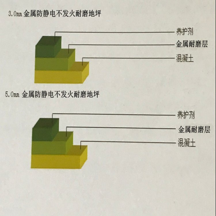 去除浮浆:如表面出现浮浆,应使用圆盘机械镘(模板边缘使用木抹)均匀的将混凝土表面的浮浆破坏掉。撒布骨料,以平均每平方米6--8公斤的用量,分两次撒布在初凝的混凝土表面(完成*步撒布工作,待耐涂硬顶吸收一定水份后,进行机械圆盘的机械镘抹作业;待*层不发火硬化剂材料硬化至一定阶段,再进行第二次材料撒布作业),然后机械镘抹作业使之成为一个整体,从而获得厚度为4—6毫米且具有良好的耐磨、防尘、防爆和美观性能的不发火耐磨?地面。