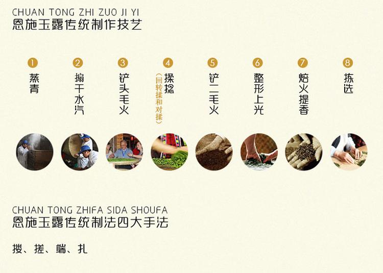 1965年,恩施玉露被评为"中国十大名茶",2009年被评为“湖北省历史名茶”恩施玉露源自唐朝,是中国保留下来为数不多的一种蒸青针形绿茶