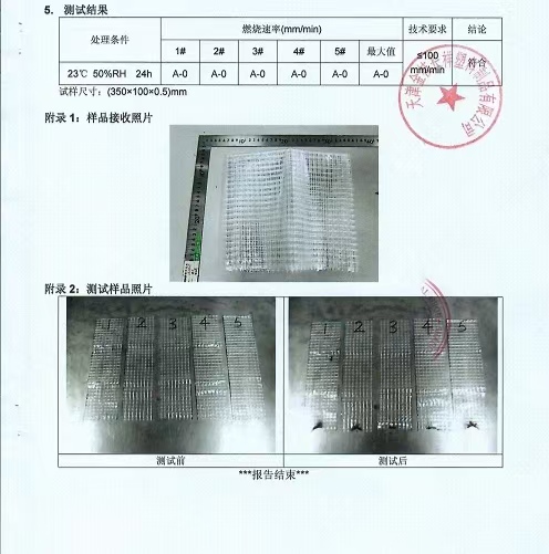 燃烧性能测试报告符合要求:燃烧速率A-0