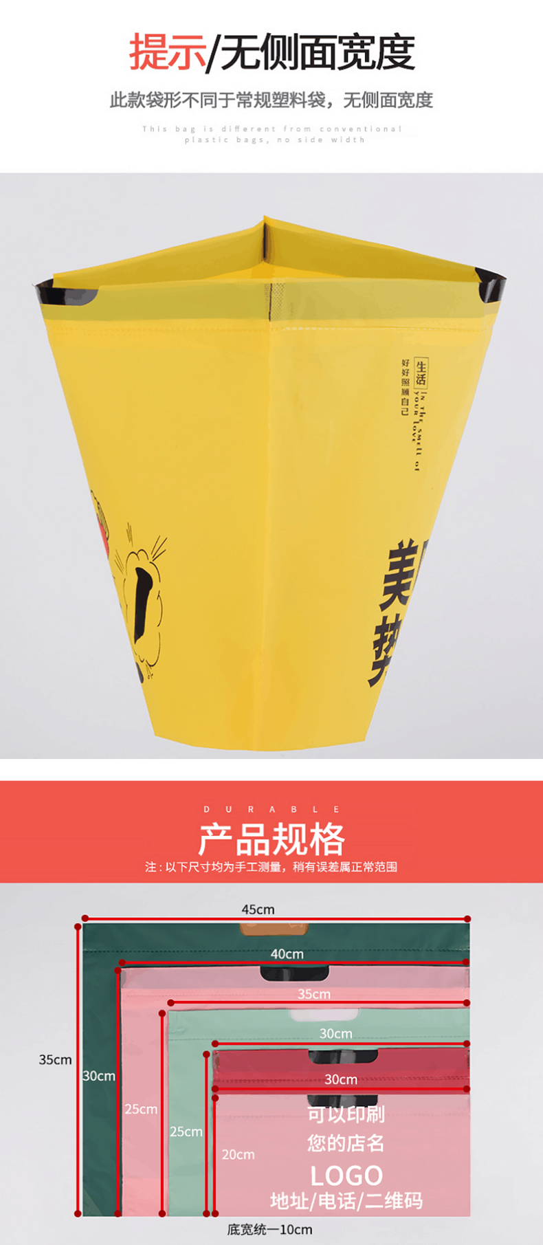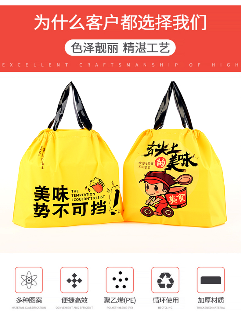 现货束口袋-厂家网红定制拉拉袋手提袋可印logo外卖袋打包定做彩印找天津味来雨田