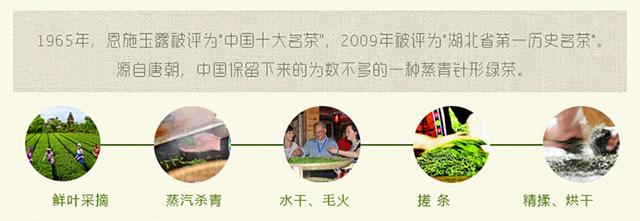 1965年,恩施玉露被评为"中国十大名茶",2009年被评为“湖北省历史名茶”恩施玉露源自唐朝,是中国保留下来为数不多的一种蒸青针形绿茶