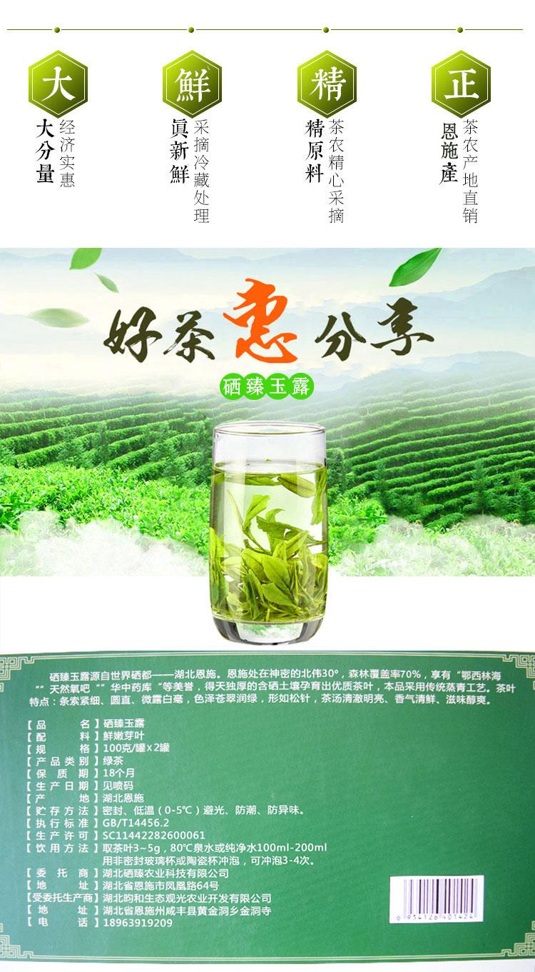 品名 | 硒臻玉露 | 配料 | 鲜嫩芽叶 | 规格 | 100克/罐X2罐 |