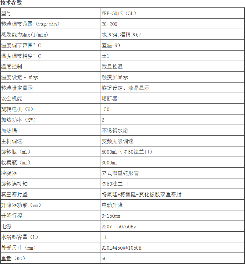 予华YRE-501Z(5L)自动升降旋转蒸发仪特点: