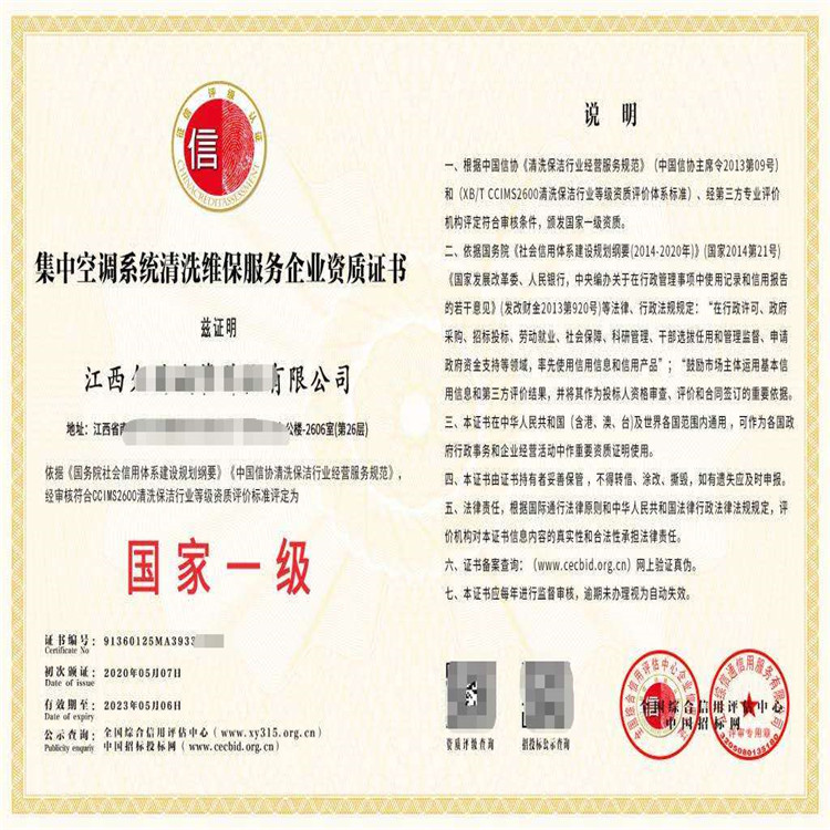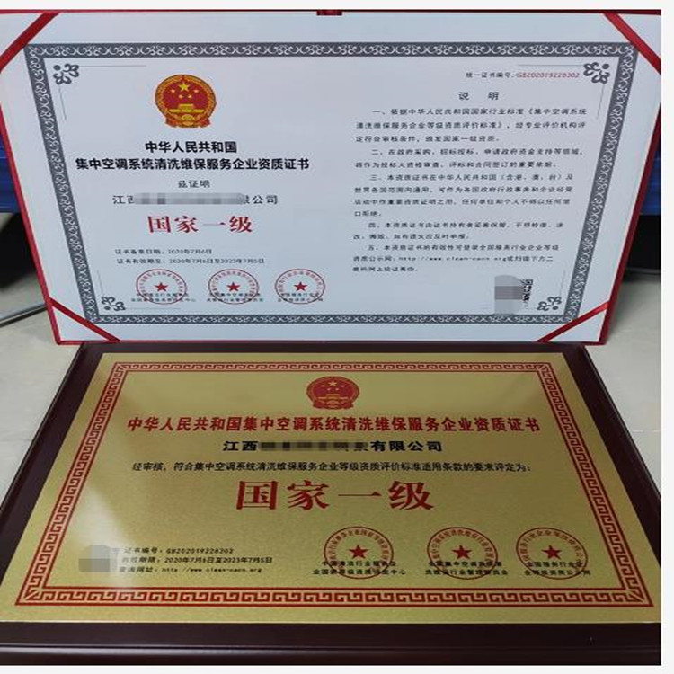 我司依据法律、性法规有关规定,经工商行政部门注册,具有和法人地位的第三方检验鉴定、认证机构。 我公司专业帮助企业申办企业荣誉证书、企业资质证书、企业认证证书,其中包括(企业信用等级AA,服务信誉AA企业,守合同重信用企业认定ISO9001体系认证,ISO14001 体系认证,ISO18001职业健康体系认证,等等,)为您解决企业认证成长道路上的烦恼!欢迎来电。1.我们不分行业2.不限地区申办 3.我司业务辐射各地4.行业案例见证客户信任度,可查、专ye、多年认证5.证书通用6.适用于宣传、招投标、参展、招商集中空调系统清洗维保服务企业资质申请价位