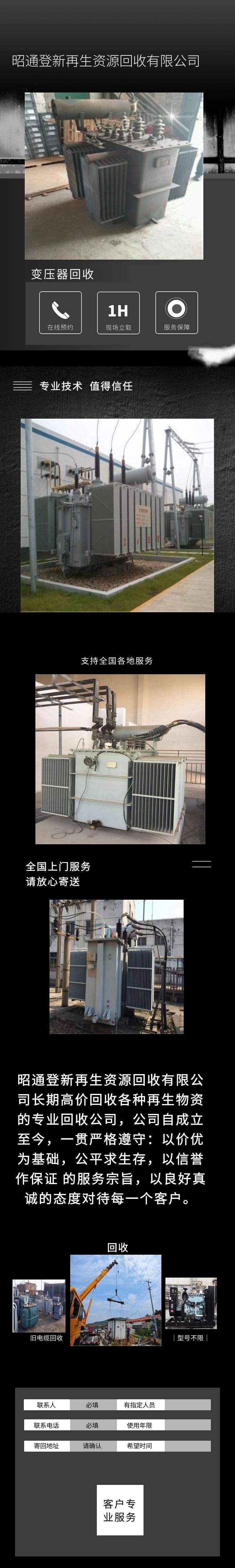 昭通登新再生资源回收有限公司长期高价回收各种再生物资的专业回收公司,公司自成立至今,一贯严格遵守:以价优为基础,公平求生存,以信誉作保证 的服务宗旨,以良好真诚的态度对待每一个客户。