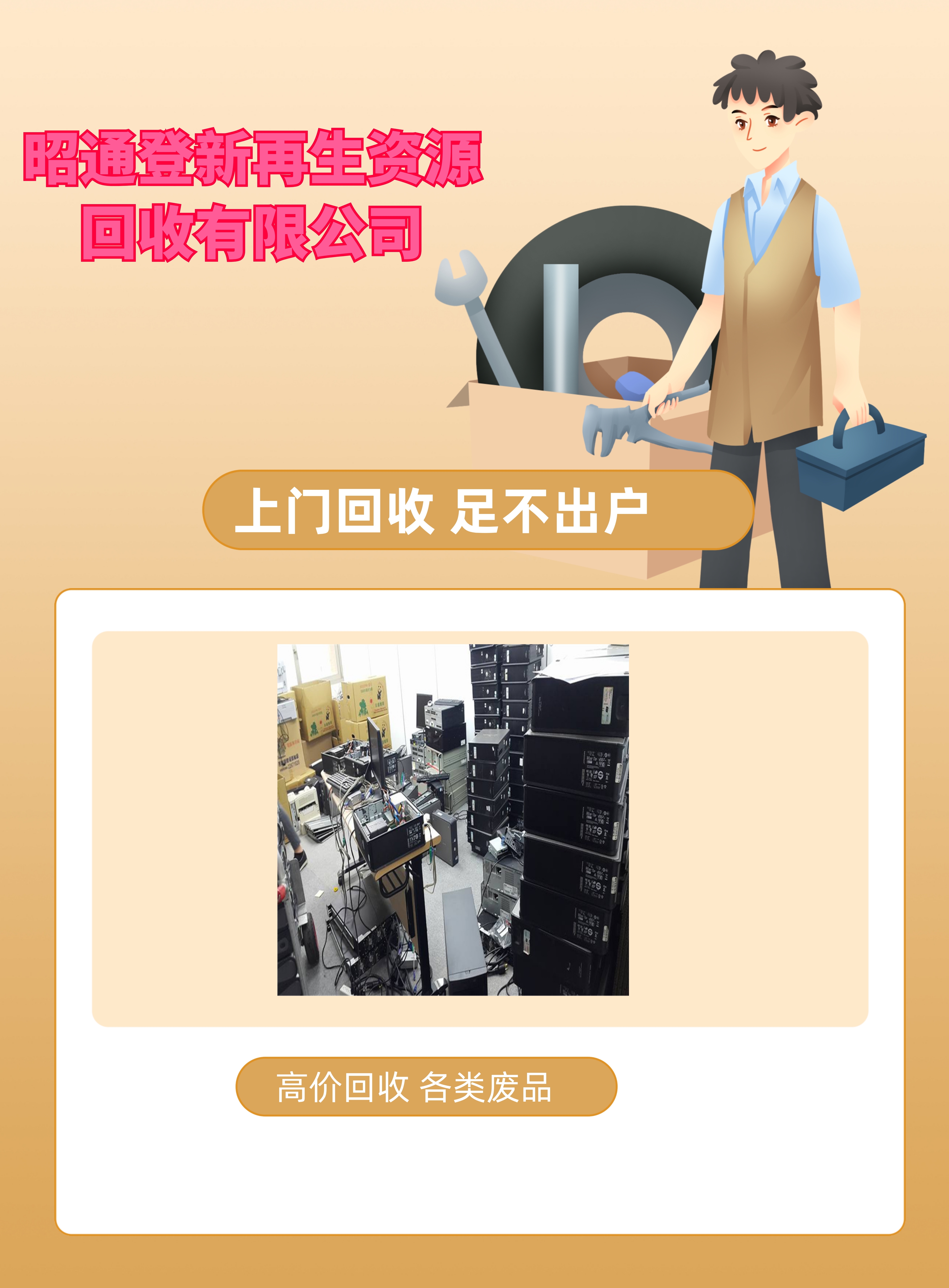 优质服务:昭通登新再生资源回收有限公司上门看货定价,欢迎有再生物资的单位及个人联系洽谈回收事宜,对提供成功业务信息者提供业务佣金,昭通登新再生资源回收有限公司将是一个更好,更安全,更可靠的合作伙伴。