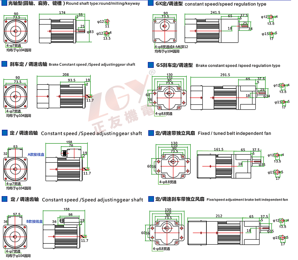 以下是6W-400W电机,实物图片,另需图纸加Q传