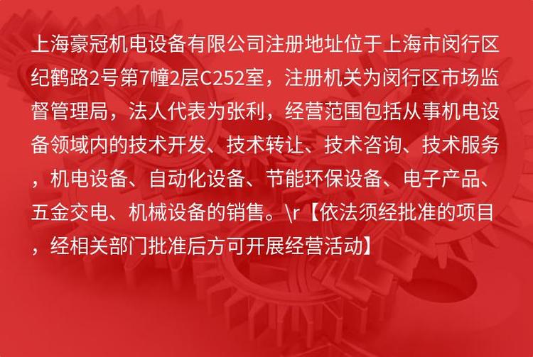 商铺名称:上海豪冠机电设备有限公司