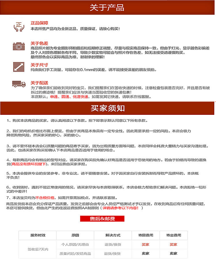 \ \请所有新老客户放心我们所有电机发货前都认真试机,我们网上所有的图片都是100%实拍,有什么不懂或不清楚的地方,请跟我们的客服联系,都会认真的替你解答
