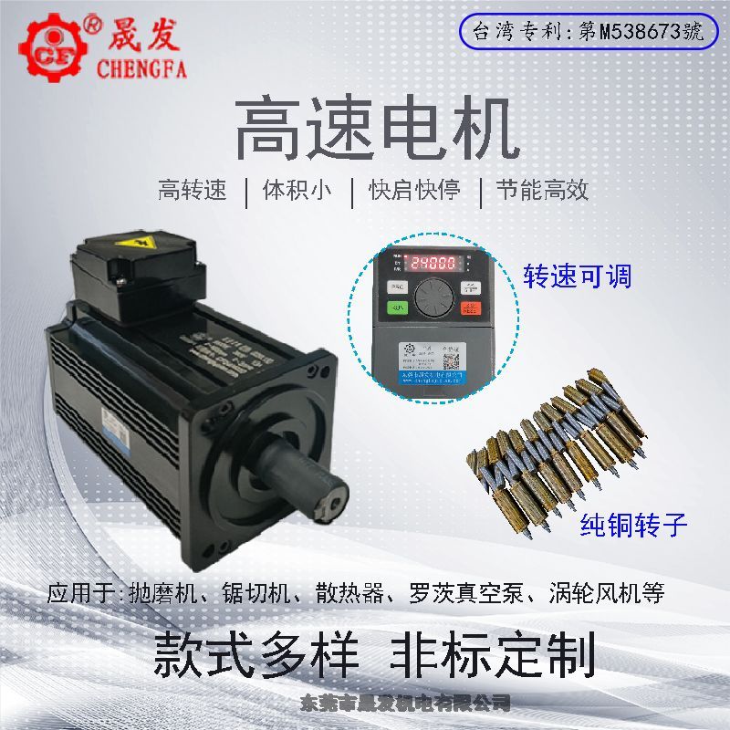 速电机俗称特殊电机、特殊三相异步电机,电机优点是高转速,高速电机的转速通常在3000转/分及以上、高速电机具有:1)设计角度不同,采用纯铜转子,无磁性、无碳刷、与直流电机结构大不一致;2)高转速,功率密度大,体积会远小于普通电机,是普通电机的1/3,可以有效的节约材料;3)具有瞬启、瞬停、恒转矩;4)传动效率高,节能降耗且环保,低噪音等特性。
