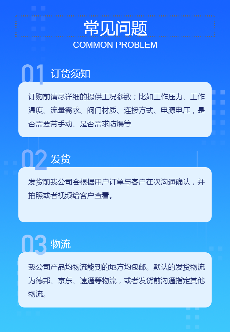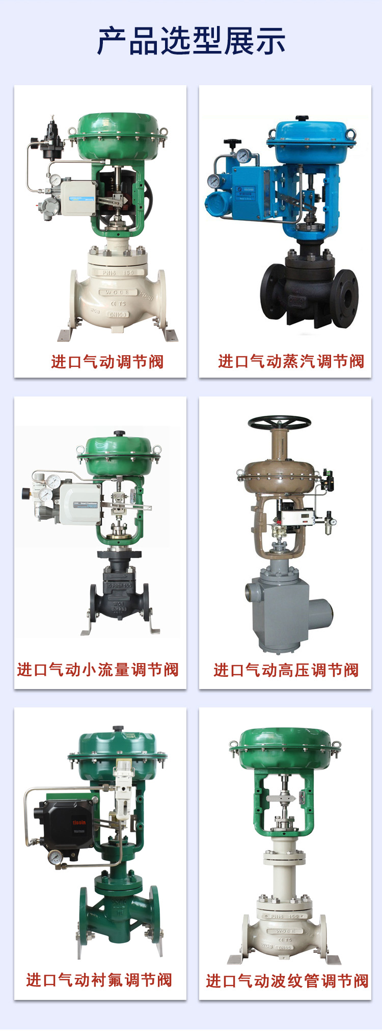 适用范围 | 对工艺管路流体介质压力、流量、温度的自动调节控制。 | ||