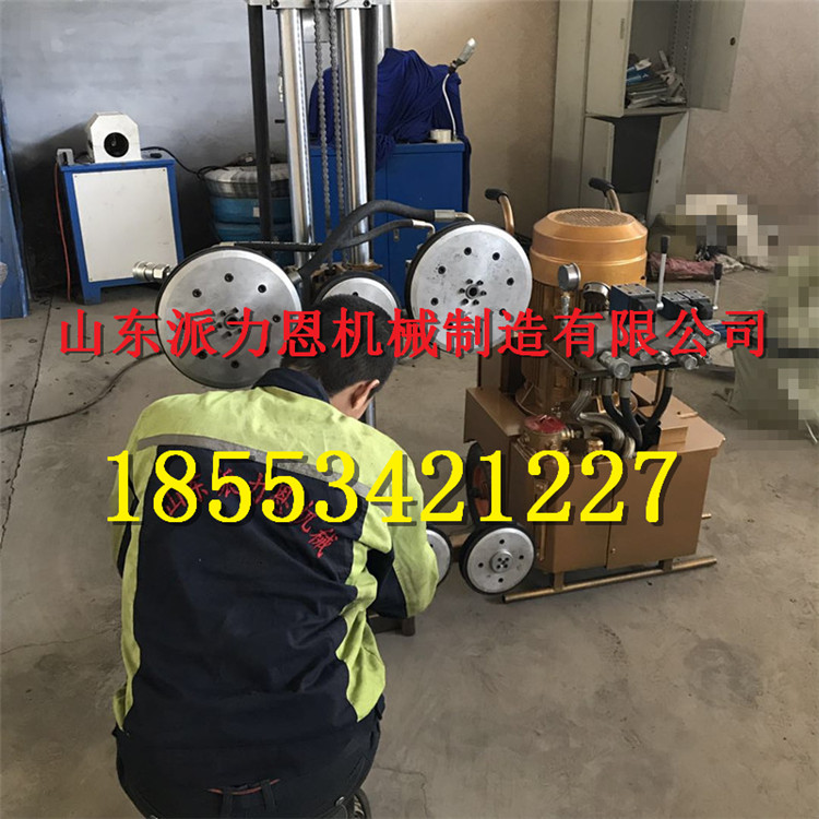 ,确保切割状态.混凝土绳锯切割机已经被广泛的运用在建筑行业和矿产行业中,绳锯机操作简单工作效率快。液压绳锯机绳锯机的主要作用就是对比较厚实的混凝土进行切割,经常用于地下室和支柱等地方的切割拆除和修缮工作。另外绳锯机的切割作业深度是不受到限制的而且绳锯机的使用范围非常的广泛,具有较强的环境适应性和作业效率。金刚石绳锯机的轴线与切削平面和进给方向垂直。本实用新型公开了一种组合式金刚石绳锯机,属于机械加工,可用于各种材料的切割,如钢筋混凝土建筑物的拆除、海底单双层油气管道或海底导管架的切割等。本实用新型包括固定基座,设在固定基座上的驱动装置、顶紧机构;所述驱动装置包括至少2个同型号的电机,被电机传动轴围绕啮合带动的主动轮。本实用新型改变了单马达同轴驱动的现象,利用多个电机边缘驱动,解决了动力不充足的现象,利用气压传动装置时刻保持金刚石绳的张力,使组合式金刚石绳锯机一直切割直至完成工作,另外本实用新型结构极其简单。??