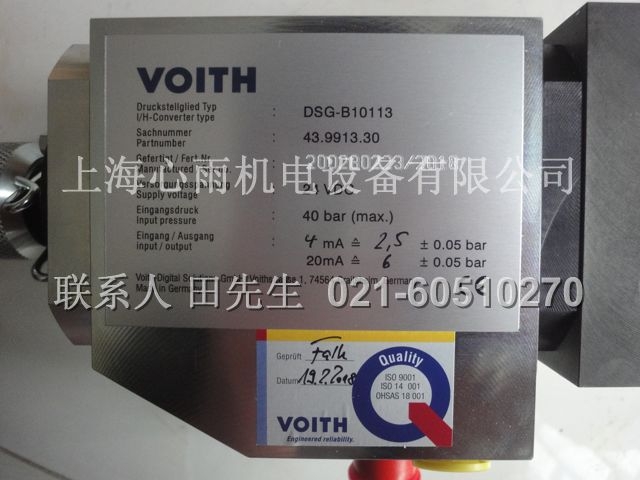 上海心雨机电设备有限公司特价销售德国VOITH TURBO福伊特电液转换器DSG-B07112 原装正品,全新原装!型号齐全,大量现货.质量保证、诚信服务、专业销售、薄利多销。信誉好,口碑好,价格低,货期短,常规部分备有现货,方便用户应急需要,服务周到!欢迎来电来函咨询选购!