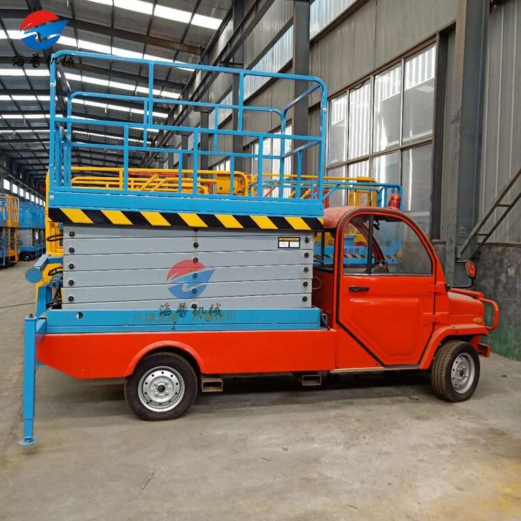 车载式升降平台:可驾驶式升降平台”又名“车载式高空升降平台”,是由升降平台和汽车配套改装而成的。它接取汽车引擎动力,实现升降平台的升降功能。适用于大流动量的高空作业。故可谓技术革新中的典范,通常可配汽车类型有:一汽小解放(单排 / 双排);五十铃轻卡(单排 / 双排);二汽东风轻卡(单排 / 双排);南汽跃进 1.5T (单排 / 双排);南汽跃进卡车 3T( 单排 );二汽东风卡车 2T( 单排 )