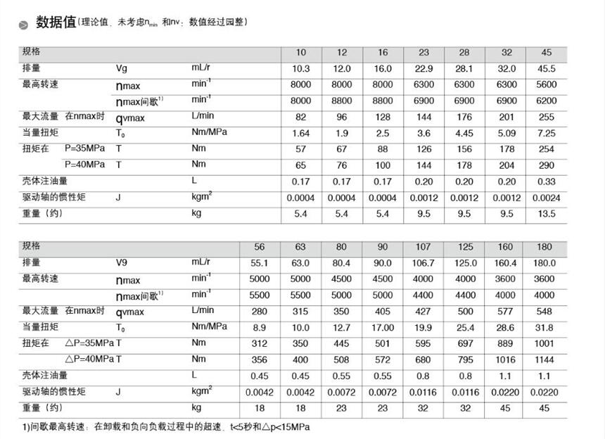 注意:泄漏油(壳体泄油)温度受压力和马达转速的影响.
