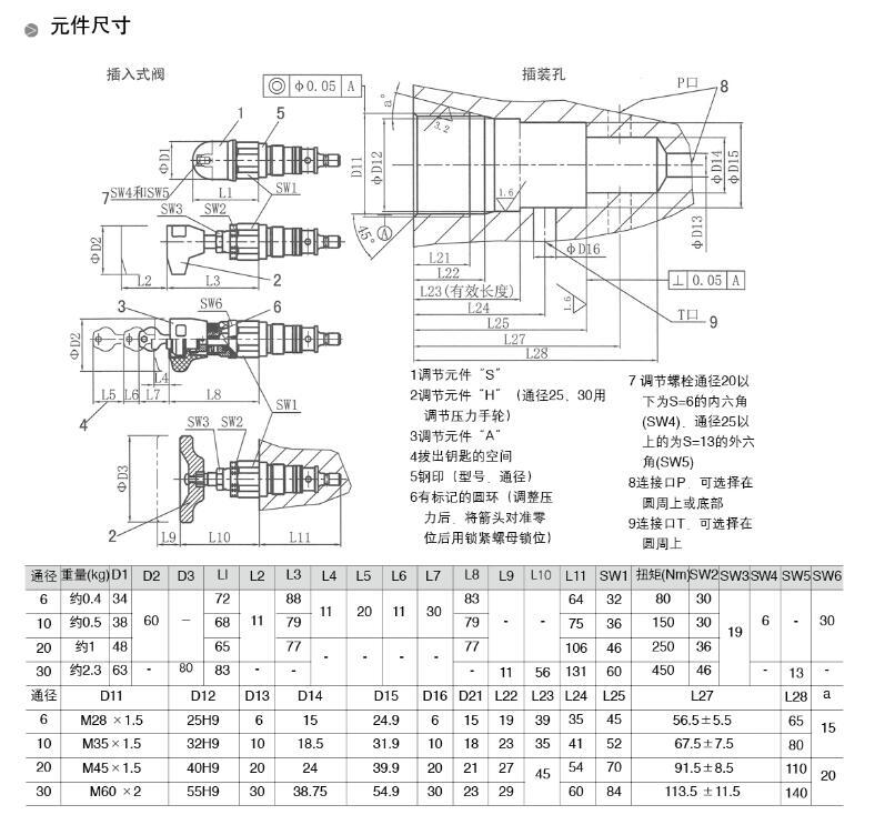 如果管路P的压力超过弹簧(2)的设定值.则提升锥阀芯(3)或球阀芯(4)克服弹簧力(2)而开启。压力油从P管路流向T管路。提升阀阀