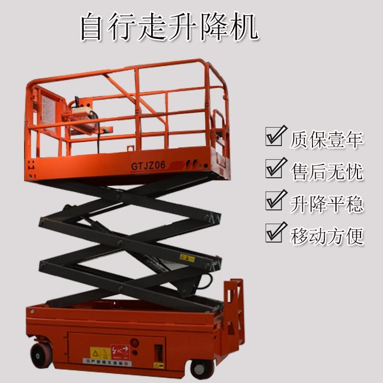 自行式升降平台的主要特点是:使用人员可以不用下升降台就可控制机械升降、行走,自行式移动液压升降机可在台面上控制设备行驶到其他的工作地点。设备自身具有行走及转向驱动功能,不需人工牵引,不需外接电源。自行式移动液压升降机移动灵活方便,令高空作业更方便快捷,是现代企业高效安全生产之 理想高空作业设备。