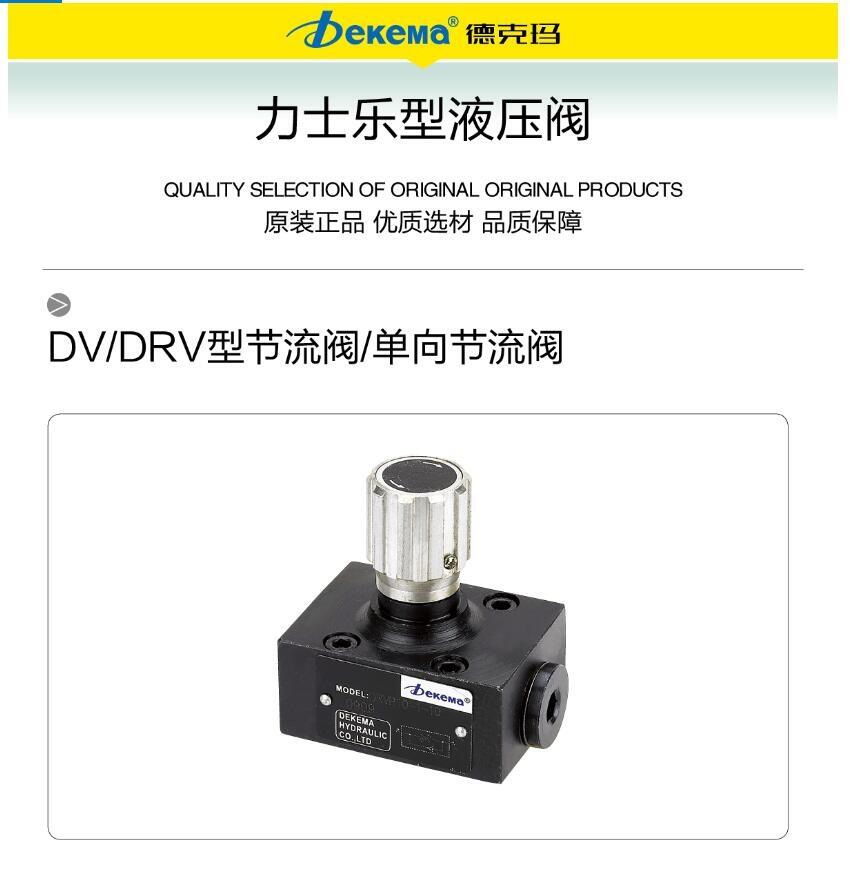 DV/DVP型节流阀和DRV/DRVP型单向节流阀是一种比较简单而又精确地调节执行元件速度的流量控制阀.完全关闭时它又是截止阀。旋钮上的彩色刻度标用来显示流量调节的大小.彩色三角的开度越大.流量越大。 同时在重新调节时仍然可以根据刻度恢复到原来设定调节的位置上。