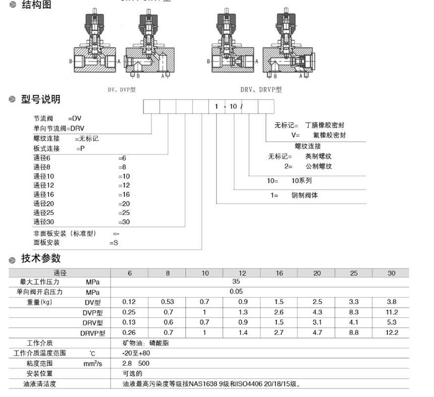 DV/DRV节流阀/单向节流阀:通径(NG)6至)30、压力至35MPa、流量至375L /min