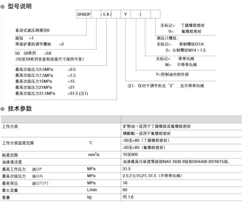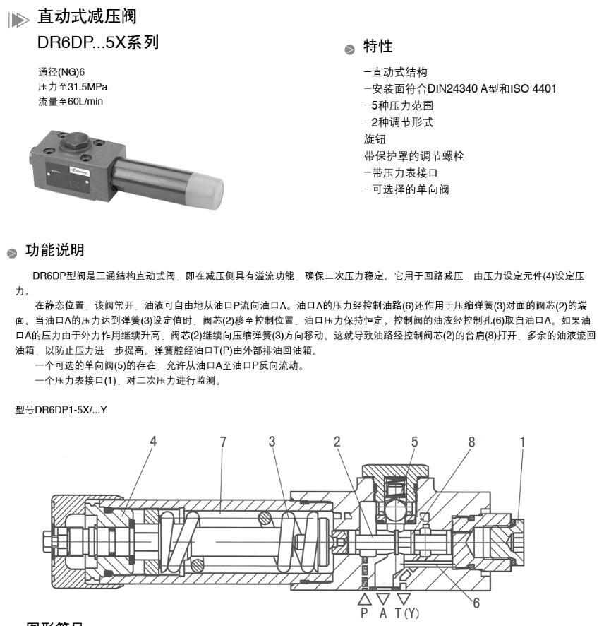 直动溢流阀型号:DR6DP1-5X、DR6DP2-5X、DR6DP1-5X/25Y、DR6DP2-5X/75Y、DR6DP1-5X/15Y、DR6DP2-5X/21Y、DR6DP1-5X/315Y、DR6DP1-5X/315YM等等