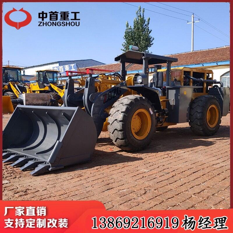 中首重工矿用铲车 矿井装载机 矿山小铲车 井下装载机 隧道铲车 地下室装载机 矿洞铲车 巷道装载机 巷道铲车 地下室铲车 尺寸小巧,动力足 适合狭小、通风条件差的环境下作业时产生的尾气 及时、顺畅排放到矿井之外,由此造成井下空间污染严重,给工作人员的健康带来 危害。中首重工矿井装载机柴油机尾气采用了水过滤系统,也就是发动机排出的废气通过两 过滤, 在空气流通不畅的空间内工人作业的健康问题;柴油氧化型催化净化器(尾气净化)。