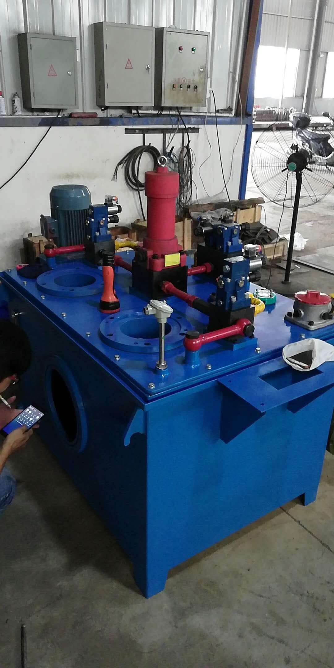 泵装置——上装有电机和油泵,它是液压站的动力源,将机械能力转化为液压油的动力能。