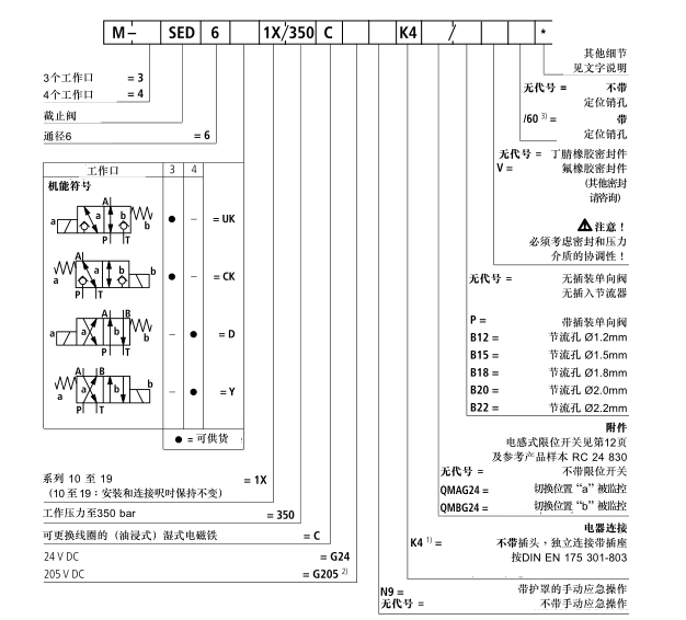 M-3SED6UK13/350CG24N9K4力士乐电磁球阀选型表
