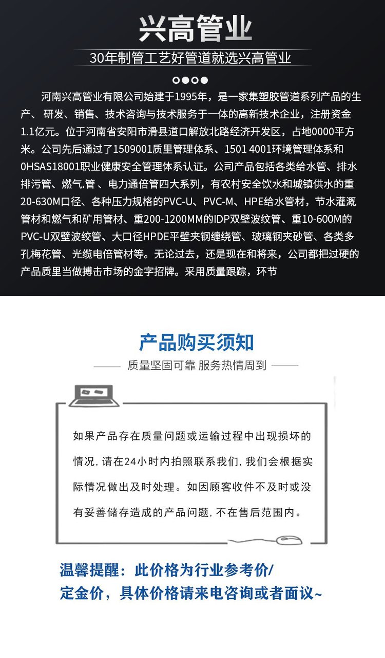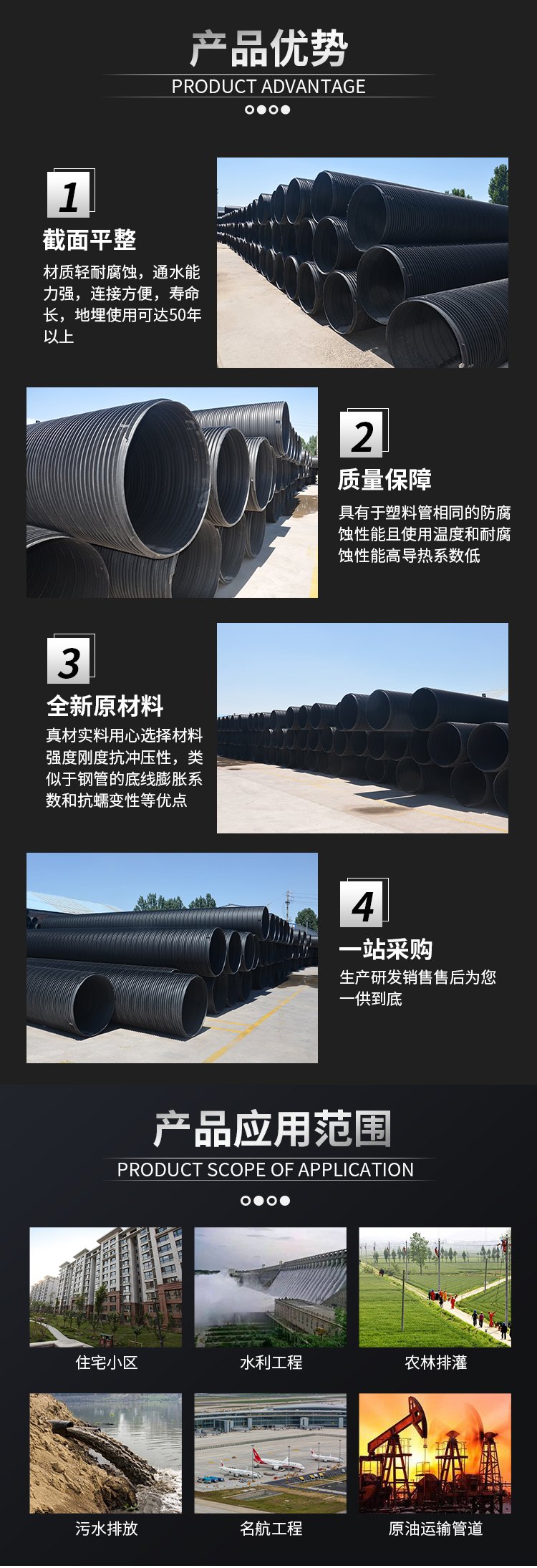 兴高管业HDPE钢带增强螺旋缠绕波纹管抗外压力强度高