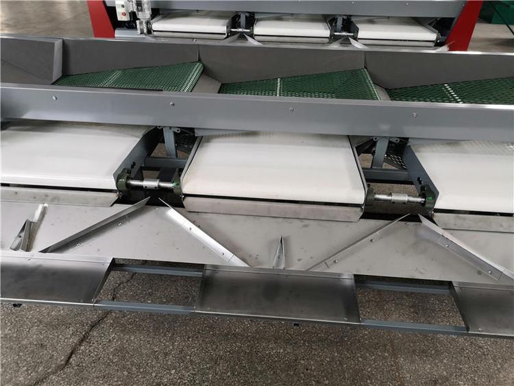 分选区时,直径小于皮带漏孔直径的直接下落到级下果区,大于漏孔直径的直接传送到二漏孔区,原理类似。依此类推分选出不同的四个等级。
