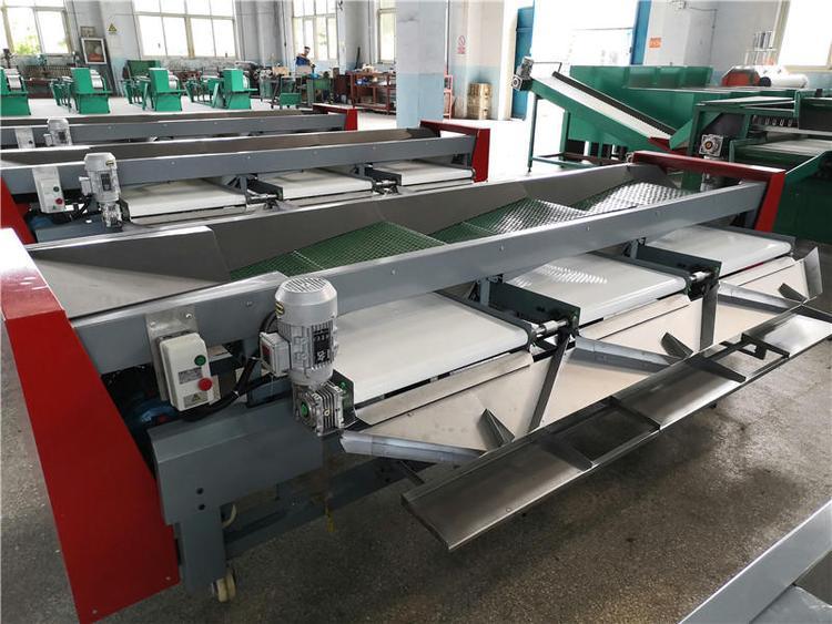 分选区,采用漏孔式分选皮带进行震动分选,蓝莓由小到大进行分选,当蓝莓传输