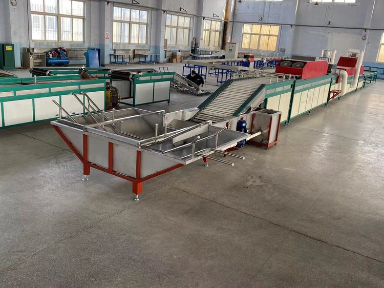 苹果柑橘清洗打蜡机作业工序:槽内循环清洗—提升—清水喷淋—风干—打蜡—烘干—抛光—输送—分级。 清洗打蜡机各分区功能: 水洗区:利用流动水形成水流气泡冲洗水果,洗去水果表面 农药残留,杂质。 提升区:清洗喷淋提升。 擦干区:风机自然风风干,擦掉水果表面水份。 喷蜡区:喷雾式打蜡。 烘干区:高于自然温度便于上蜡均匀。 抛光区:提亮蜡液亮度。 分级区:按重量分选水果大小等级。