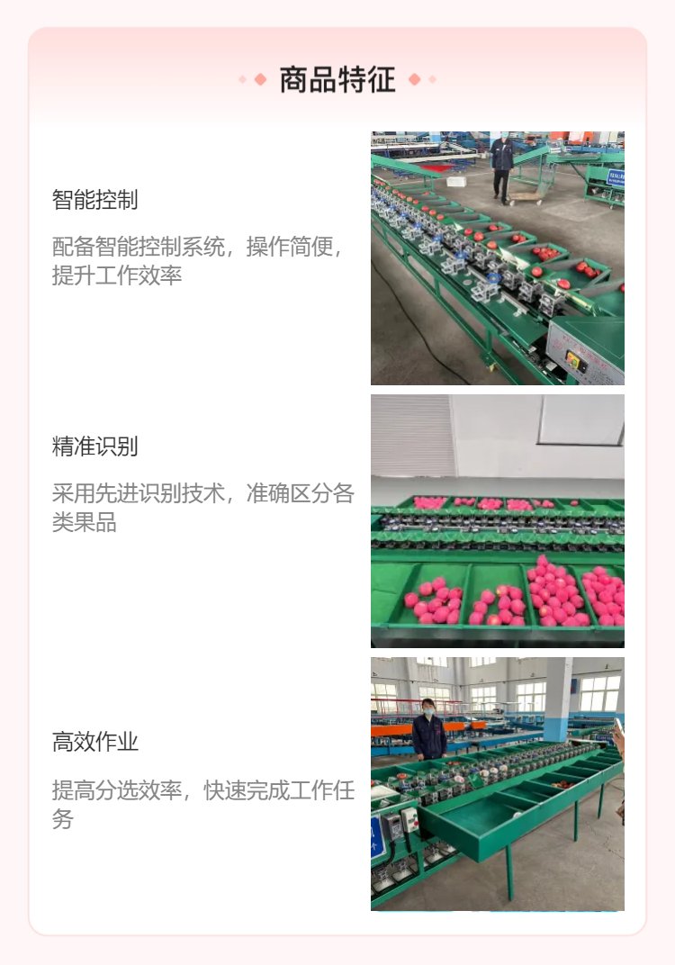 设备适合分选水果 | 苹果、释迦果、柠檬、红美人、猕猴桃重量分选 | ||