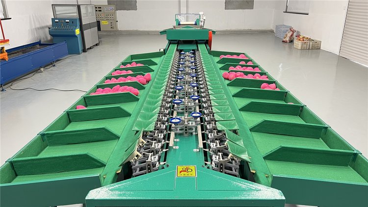 我们有25年的选果机生产经验,机械的稳定性能非常高。我们是利用天平称重来分解等级的。重量精准度达到了正负2克。我们可以根据客户的需求,来分等级,