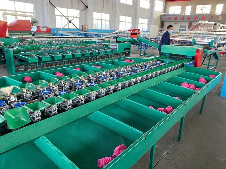 8、选果机先进的预排列技术。只需人工将水果倒在输送带上或上料斗,机械自动将水果进行排队,一个一个落入果盘进行称重分选。