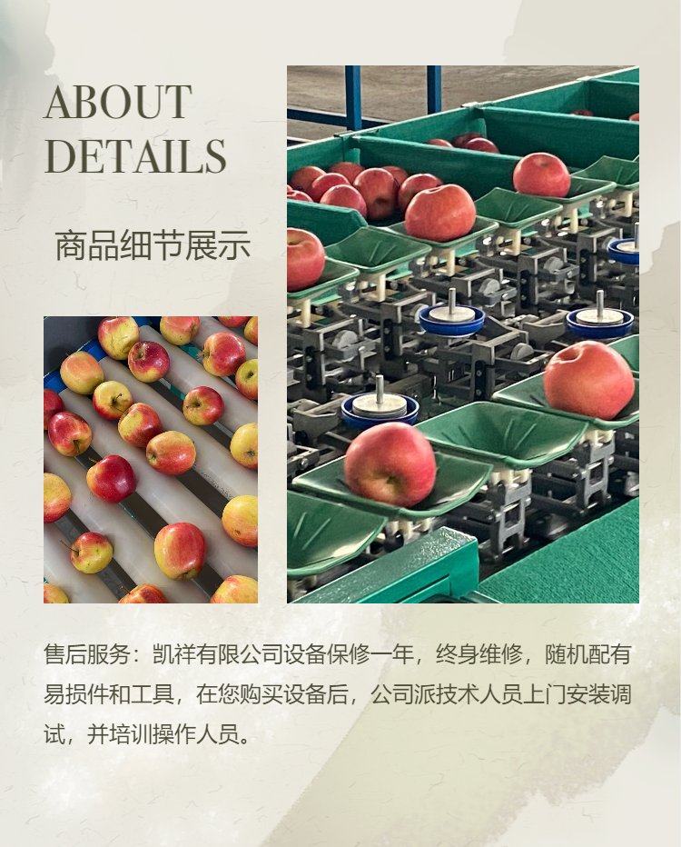 7、选果机柔软的果盘精心设计的果盘不会伤果,耐用的果盘,减少自损伤,降低使用成本。?