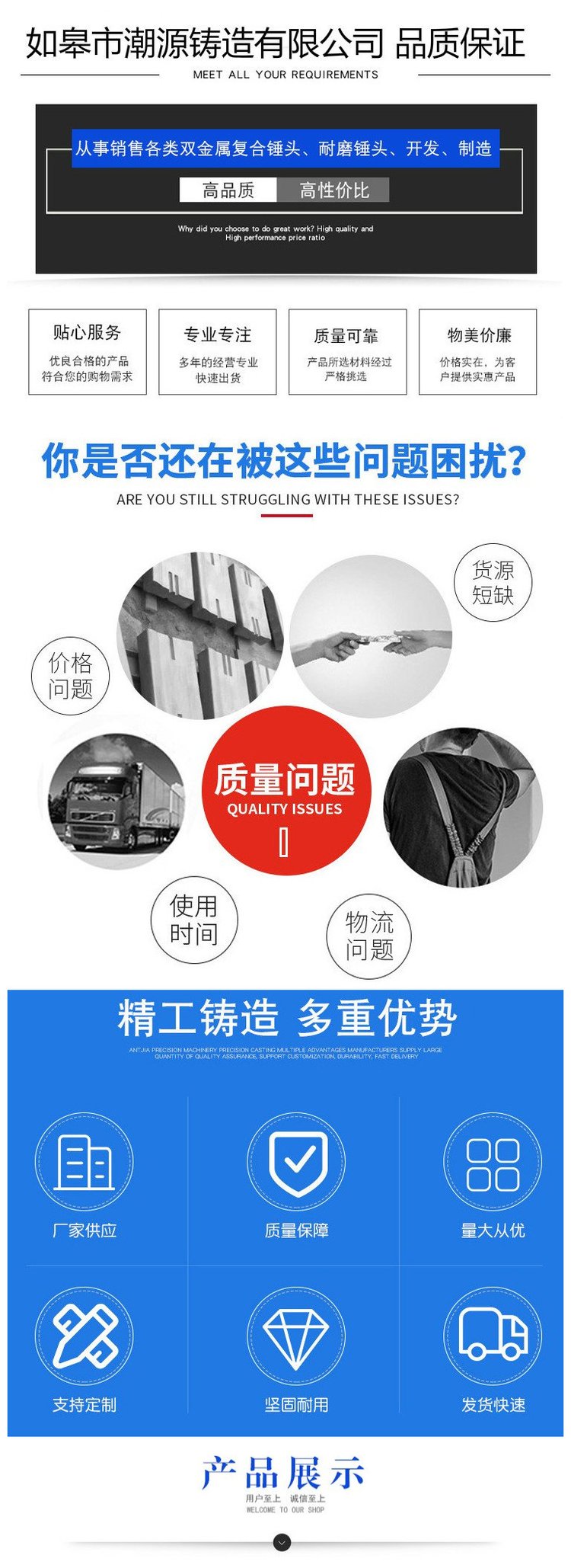 潮源铸造可按需求支持定制加工耐磨高铬合金锤头品质保证