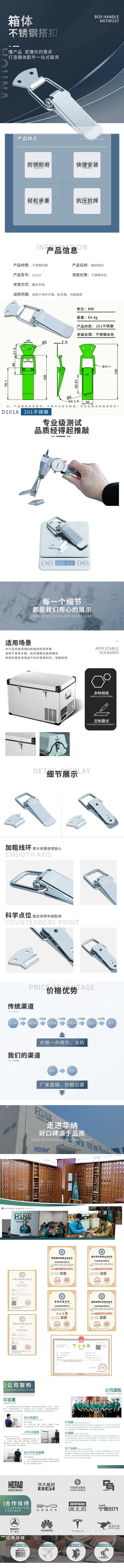 华纳木箱卡扣工具箱锁扣不锈钢挂锁弹簧箱扣塑料箱扁嘴塔扣D101A