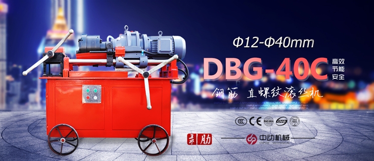 中动DBG-40C型钢筋剥肋滚轧直螺纹机床主要用于建筑工程带肋钢筋滚轧直螺纹丝头加工,是实现钢筋连接的关键设备,可加工φ12—φ40mm的HRB335、HRB400、HRB500及HRB600级带肋钢筋。