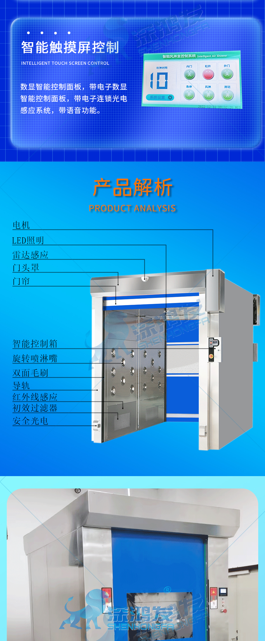 鸿发风淋室工业园洁净车间风淋通道自动开关除静电多人双吹货淋室