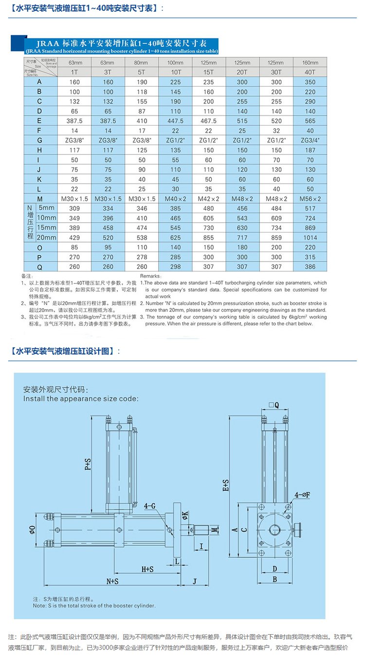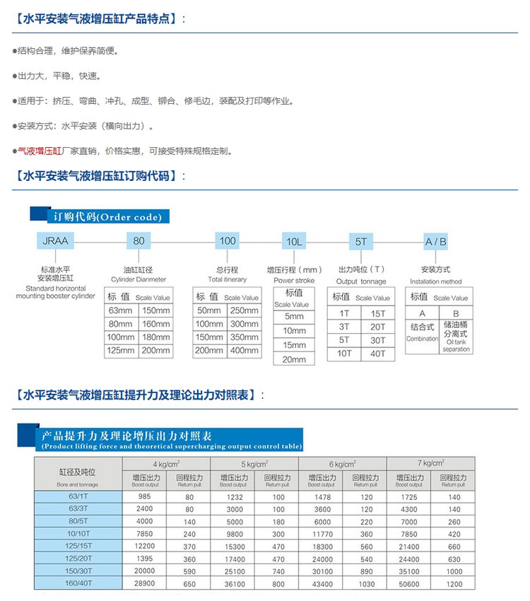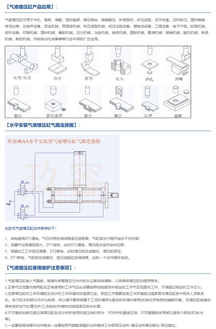 JRAA水平安装气液增压缸2年免费保修非标定制