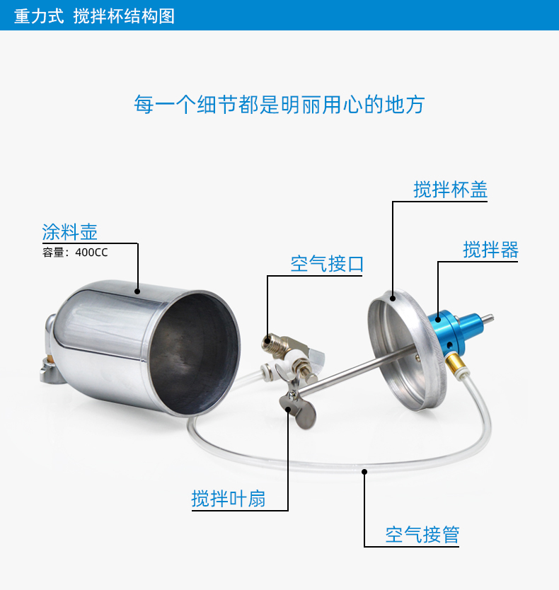 明丽气动搅拌壶 上/下壶防沉淀涂料搅拌杯 配套W-71/101油漆喷枪 是否支持加工定制 | 是 | ||