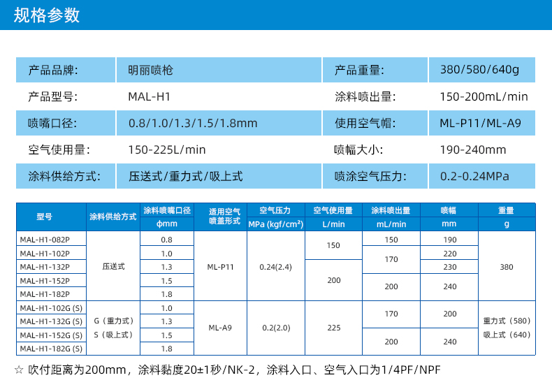 涂料供给方式 | 压送式 / 重力式(上壶)/ 吸上式(下壶) | ||