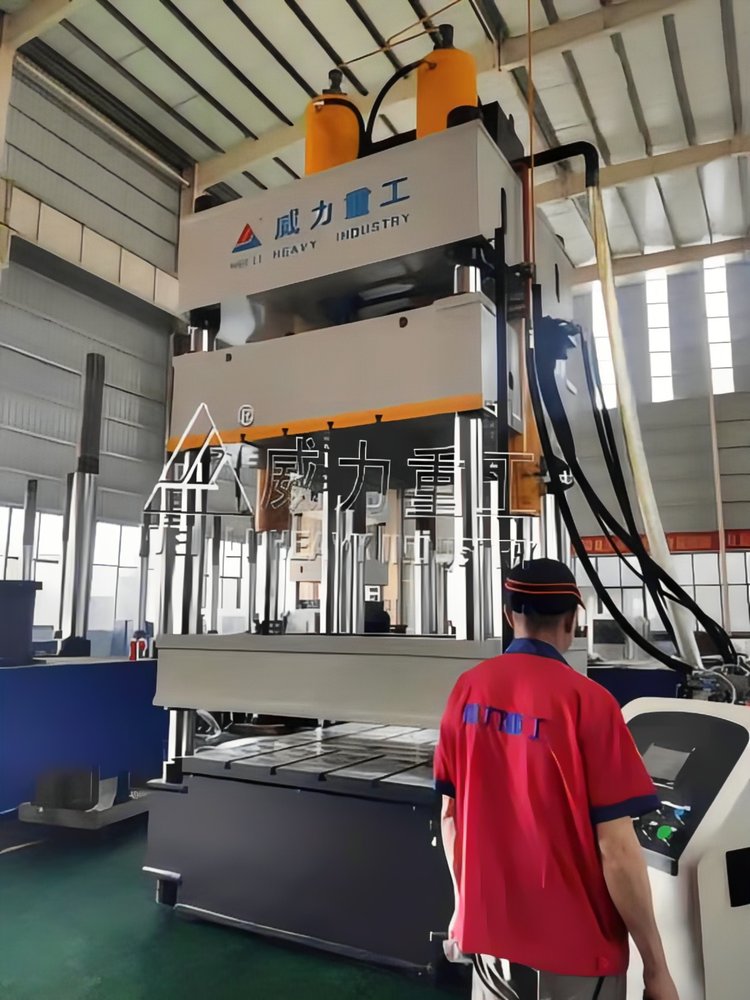 3、使用四柱液压机过程中严禁由于系统发热而将油箱盖或注油孔打开。压力表开关压力调整完毕后, 应关闭。禁止长期开启压力表开关。