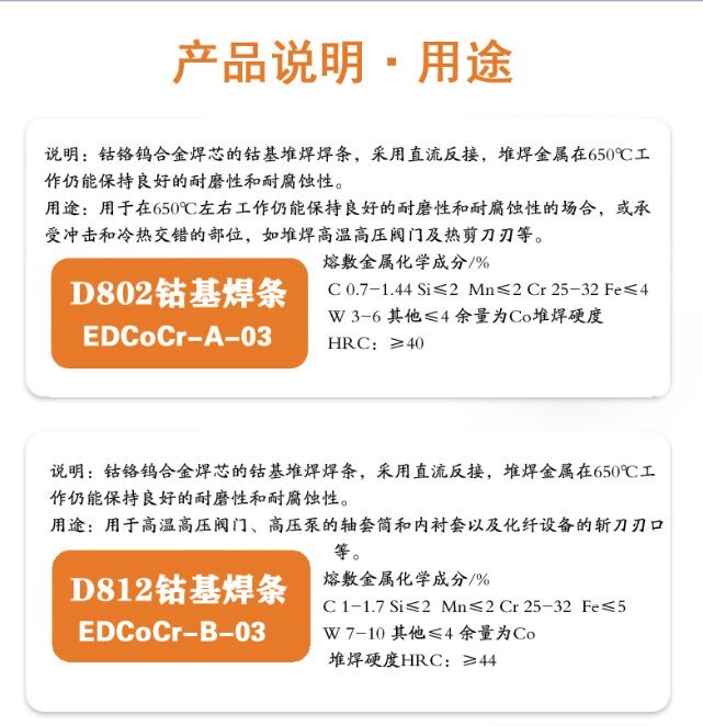 D802钴基焊条司太立堆焊电焊条规格3.2/4.0mm 品牌 | 司太立 | ||