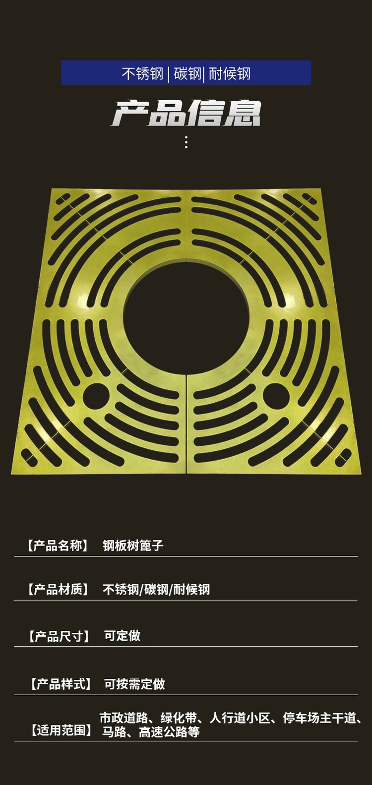 耐候钢树箅子304不锈钢树池盖板激光穿孔镂空钢板护树板镀锌喷漆