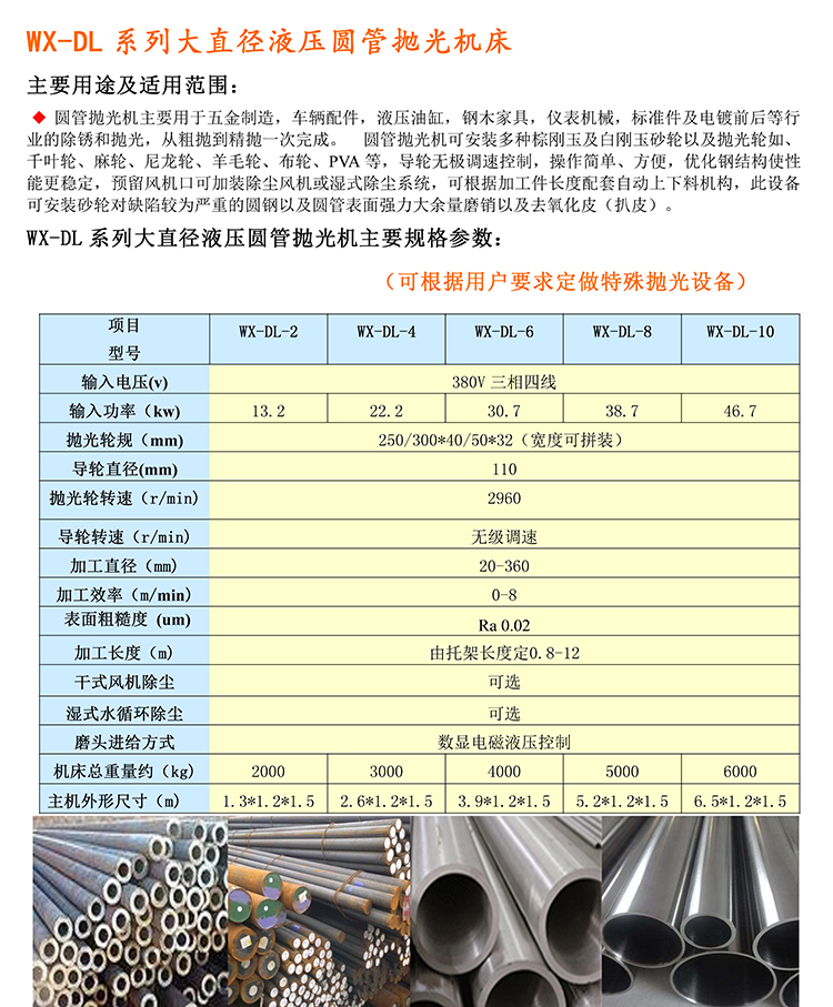 抛光轮规格(mm) | 250/300*40/50*32 | ||