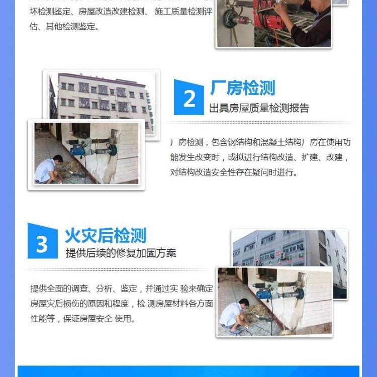 房屋鉴定类型 | 工业厂房、钢结构建筑、学校教学楼、医院办公楼、机关单位房屋、自建房 | ||