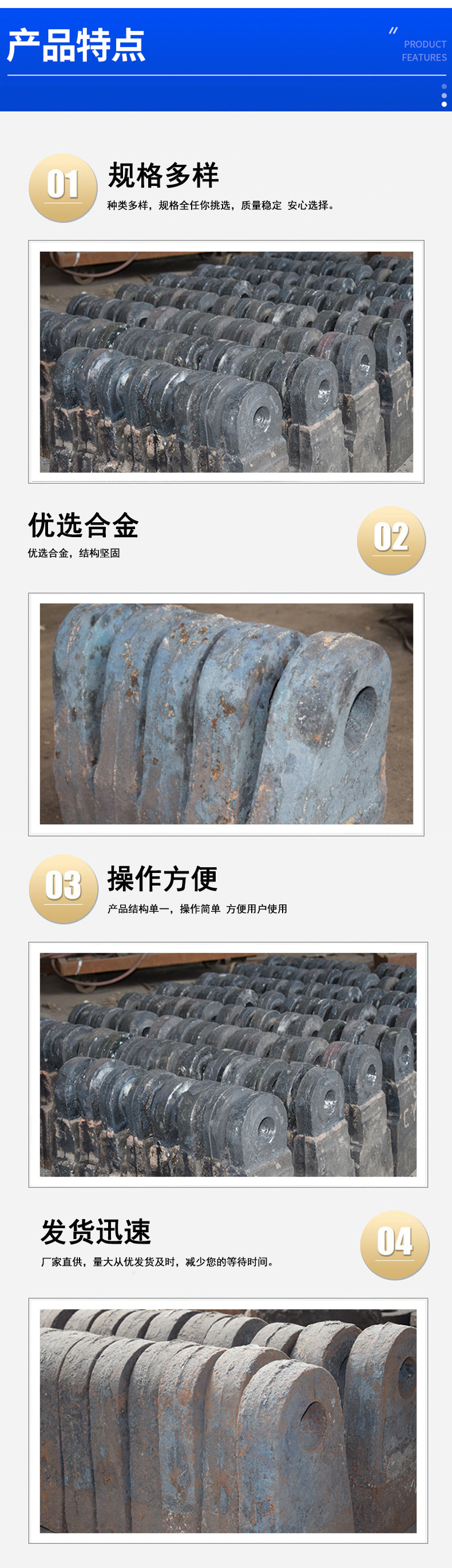 耐磨高铬合金锤头双金属复合锤双液双金属锤破碎机配件矿山开采