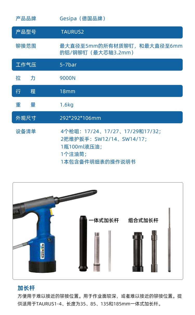 Gesipa德国气动铆钉枪拉钉枪拉铆枪配件TAURUS2