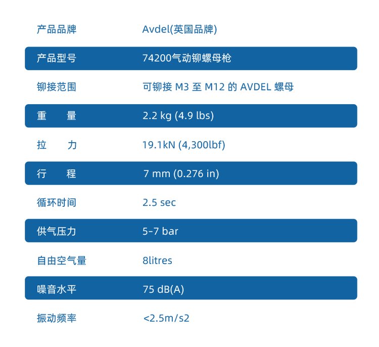 适用范围 | AVDEL气动铆螺母枪 | ||